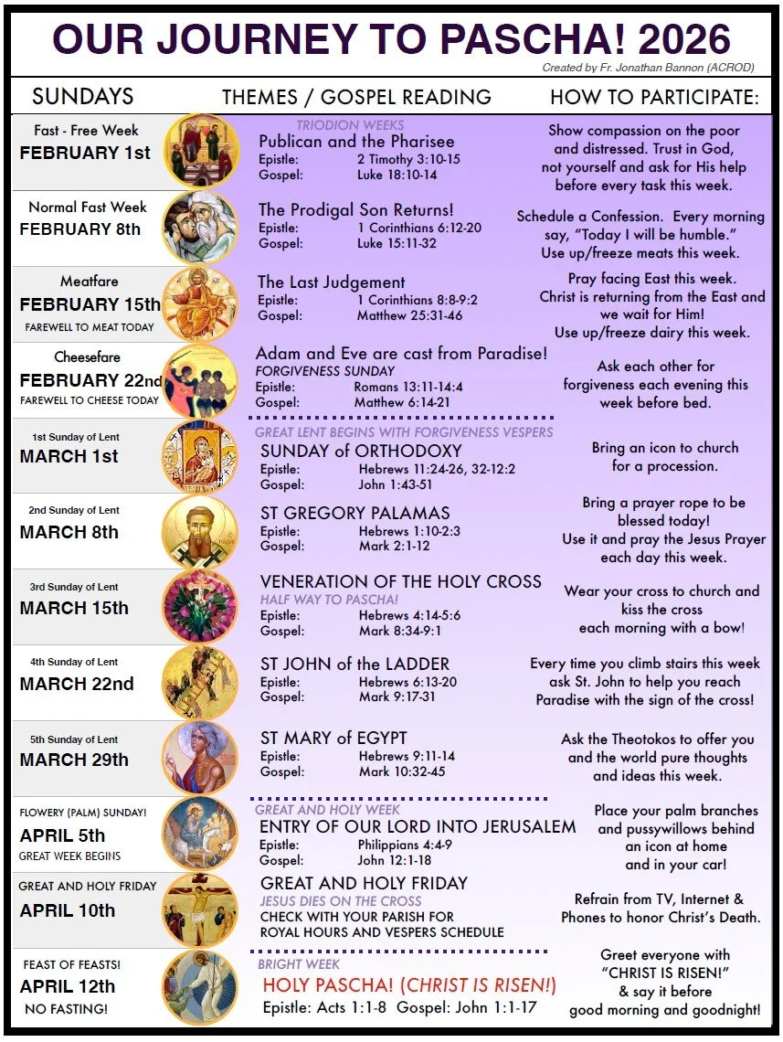 Updated with the services through Lent, Holy Week, and Pascha